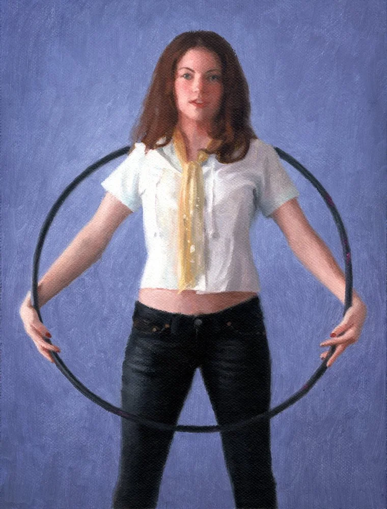 Clare in a Hoop, oil on linen panel, 8x6 inches, 2018